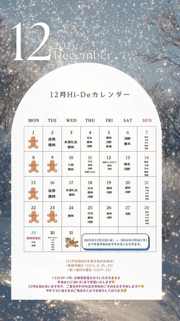 【12月定休日🎄】